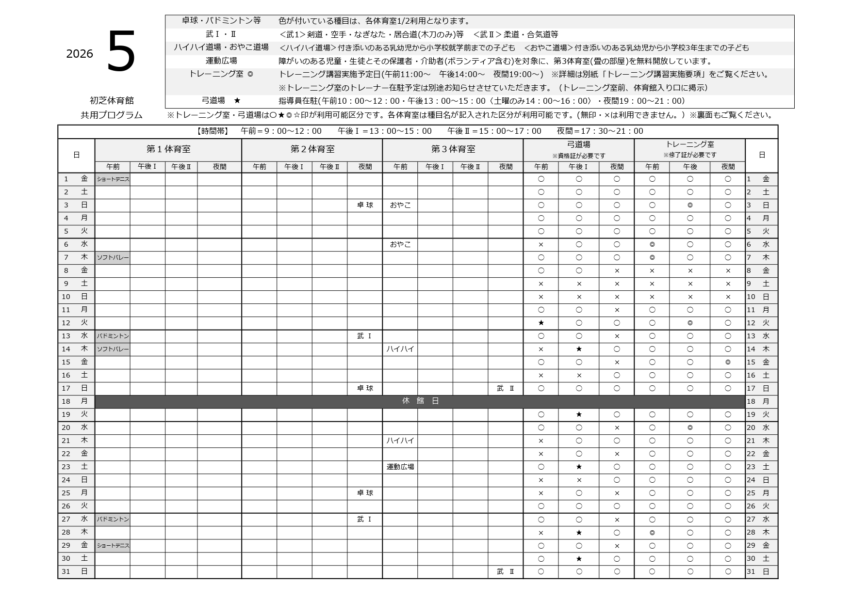 • 初芝体育館(堺市東区)公式ホームページ|スポーツ教室・施設予約・個人利用のご案内